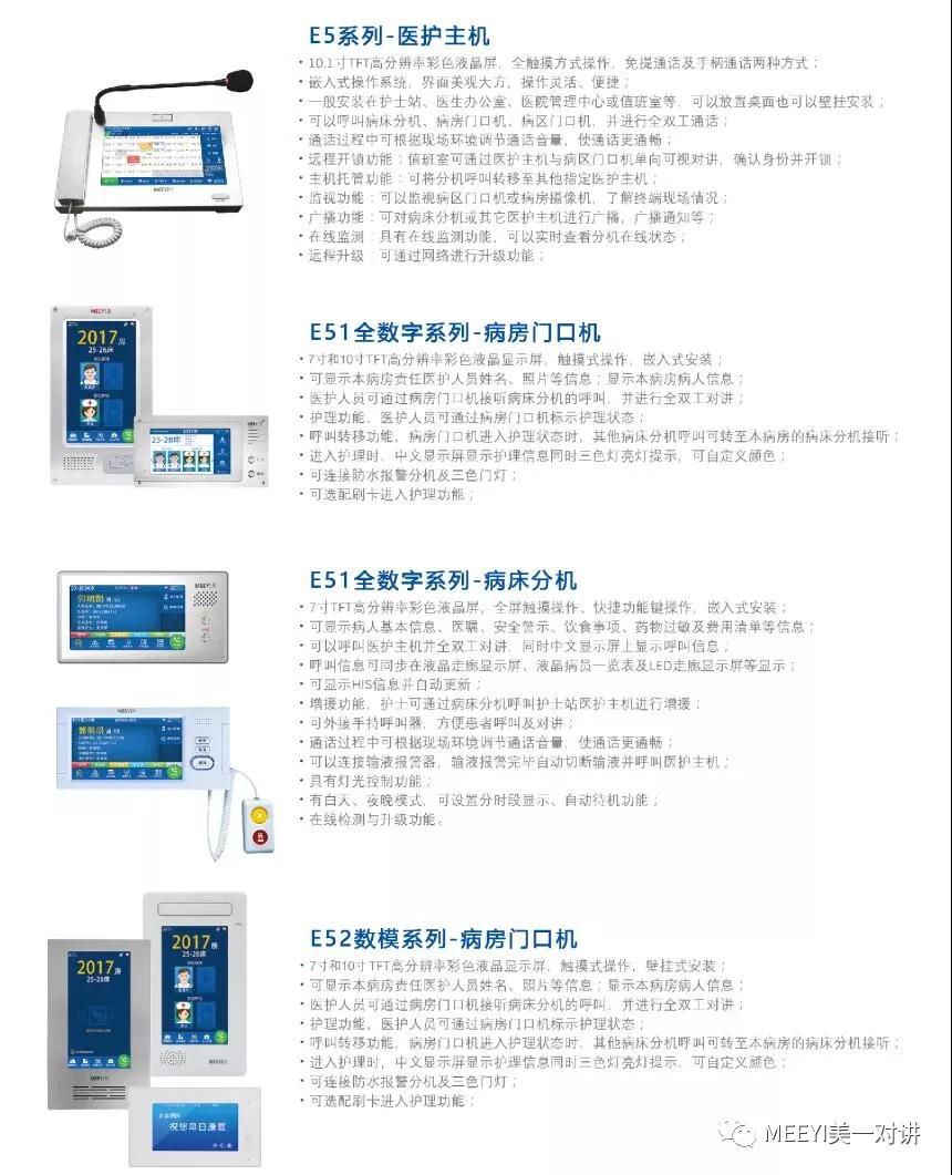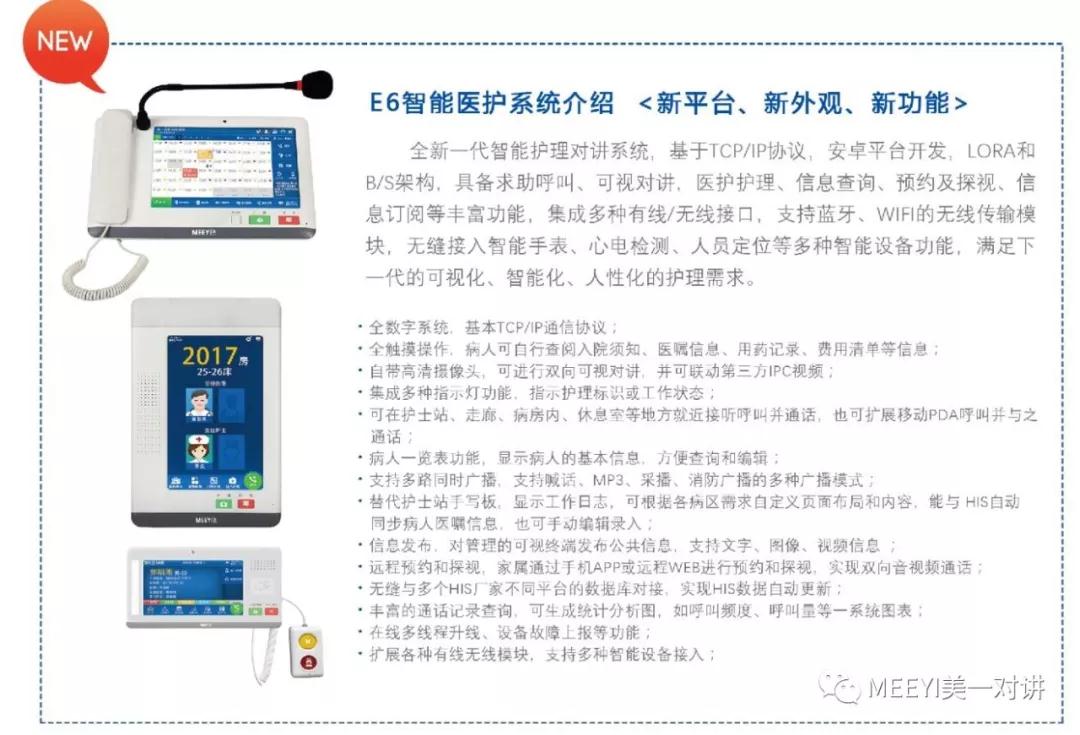 本次展會,MEEYI美一對講將展出最新的、擁有自主知識產權的全新一代智能醫(yī)護對講系統(tǒng)↓