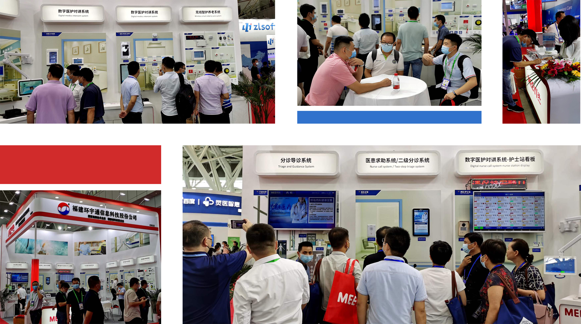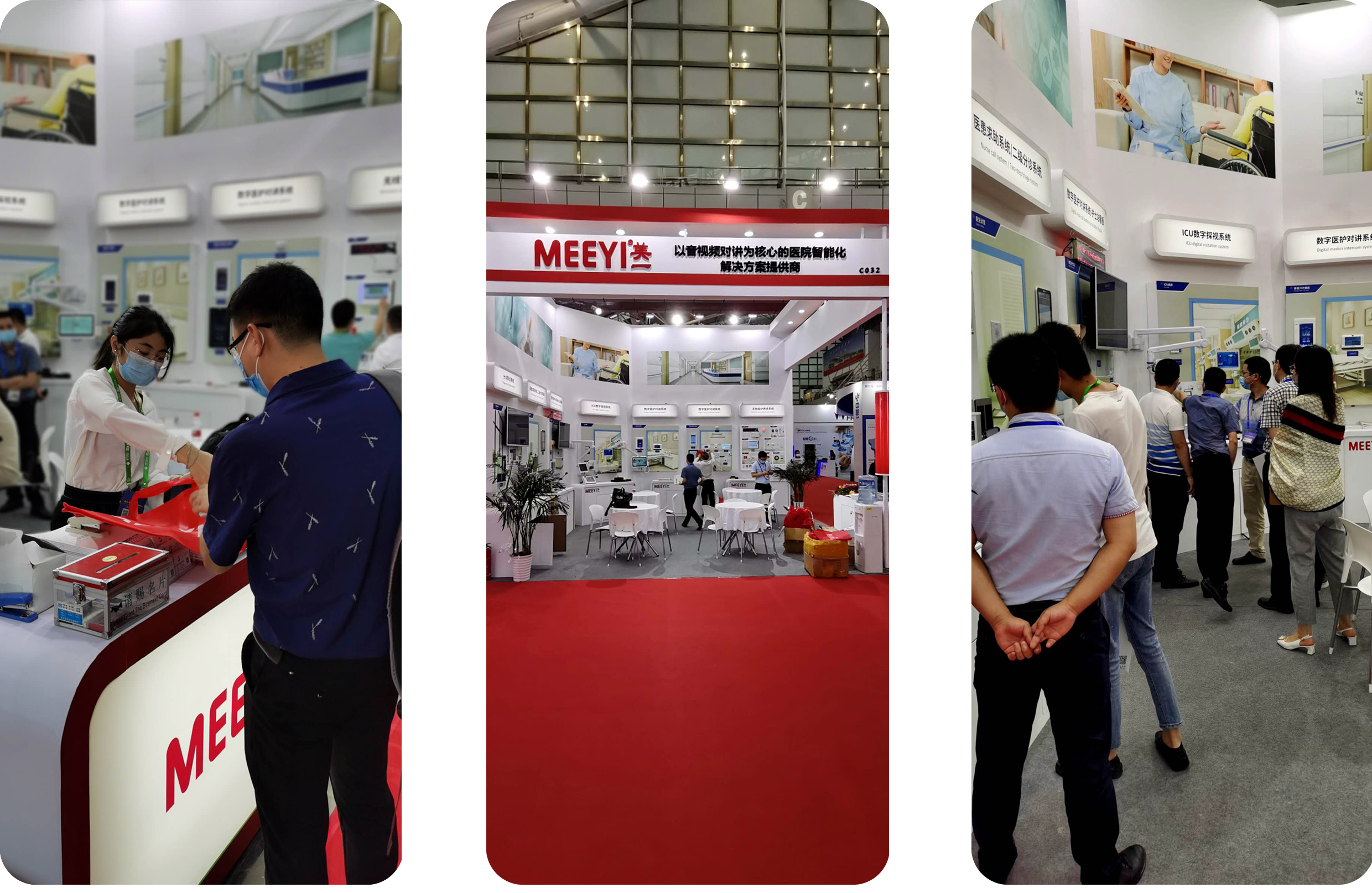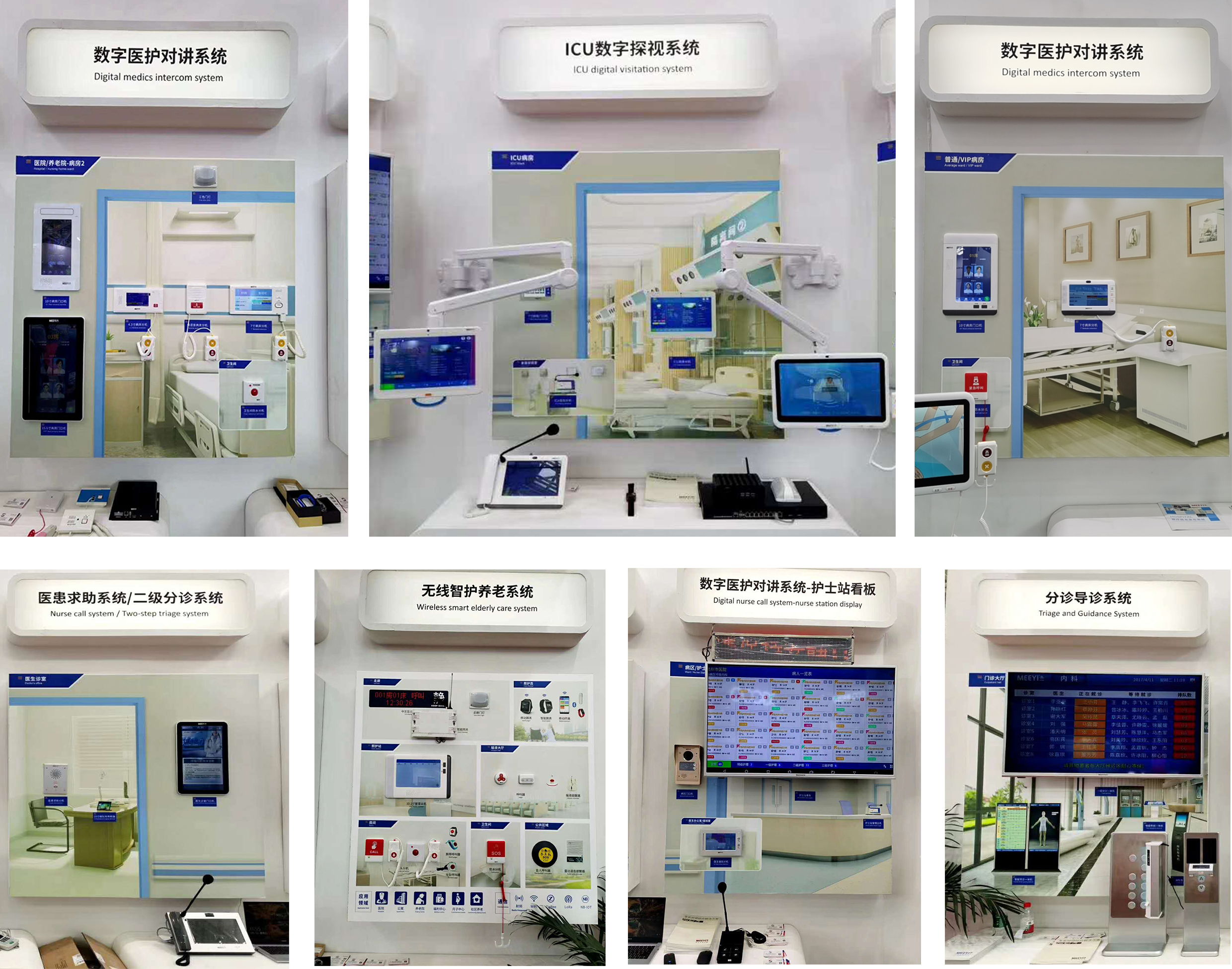 本次展會上環(huán)宇通攜旗下品牌MEEYI美一亮相C032展位,展示了醫(yī)患求助、數(shù)字醫(yī)護(hù)對講、ICU數(shù)字探視、無線智護(hù)養(yǎng)老、分診導(dǎo)診、信息發(fā)布等系統(tǒng),為醫(yī)院智能化建設(shè)提供整體解決方案。