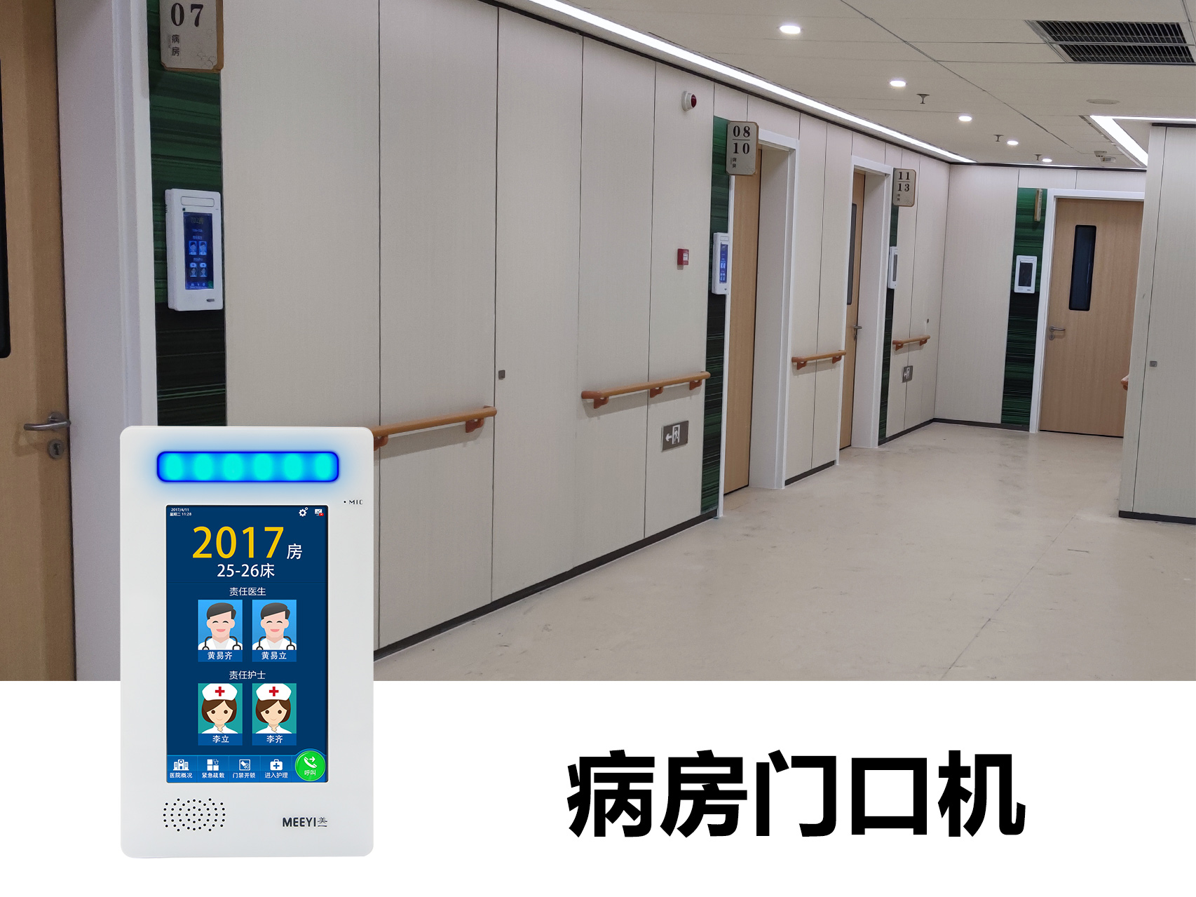 此次揚(yáng)州市廣陵區(qū)中醫(yī)院智能化改造采用了我司自主研發(fā)的“MEEYI美一”智慧醫(yī)養(yǎng)綜合解決方案中的醫(yī)護(hù)對(duì)講系統(tǒng)、信發(fā)分診排隊(duì)叫號(hào)系統(tǒng)通過該方案具備: