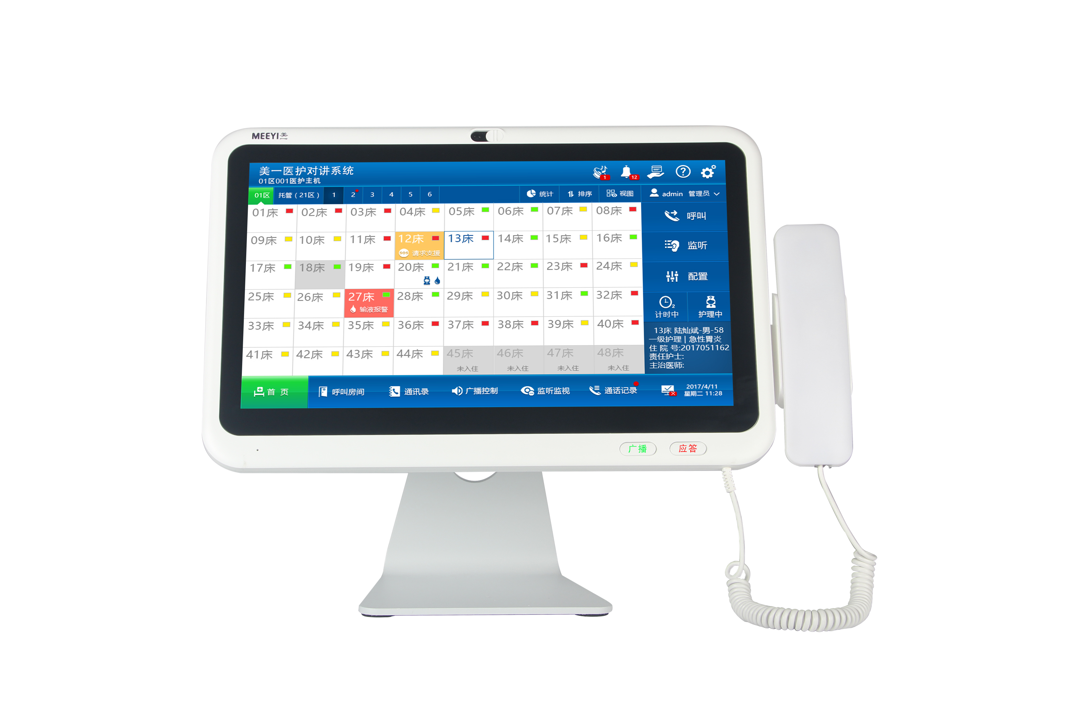 有病員一覽表功能,可顯示每路病床分機對應(yīng)的病人基本信息,并可查看詳細信息;