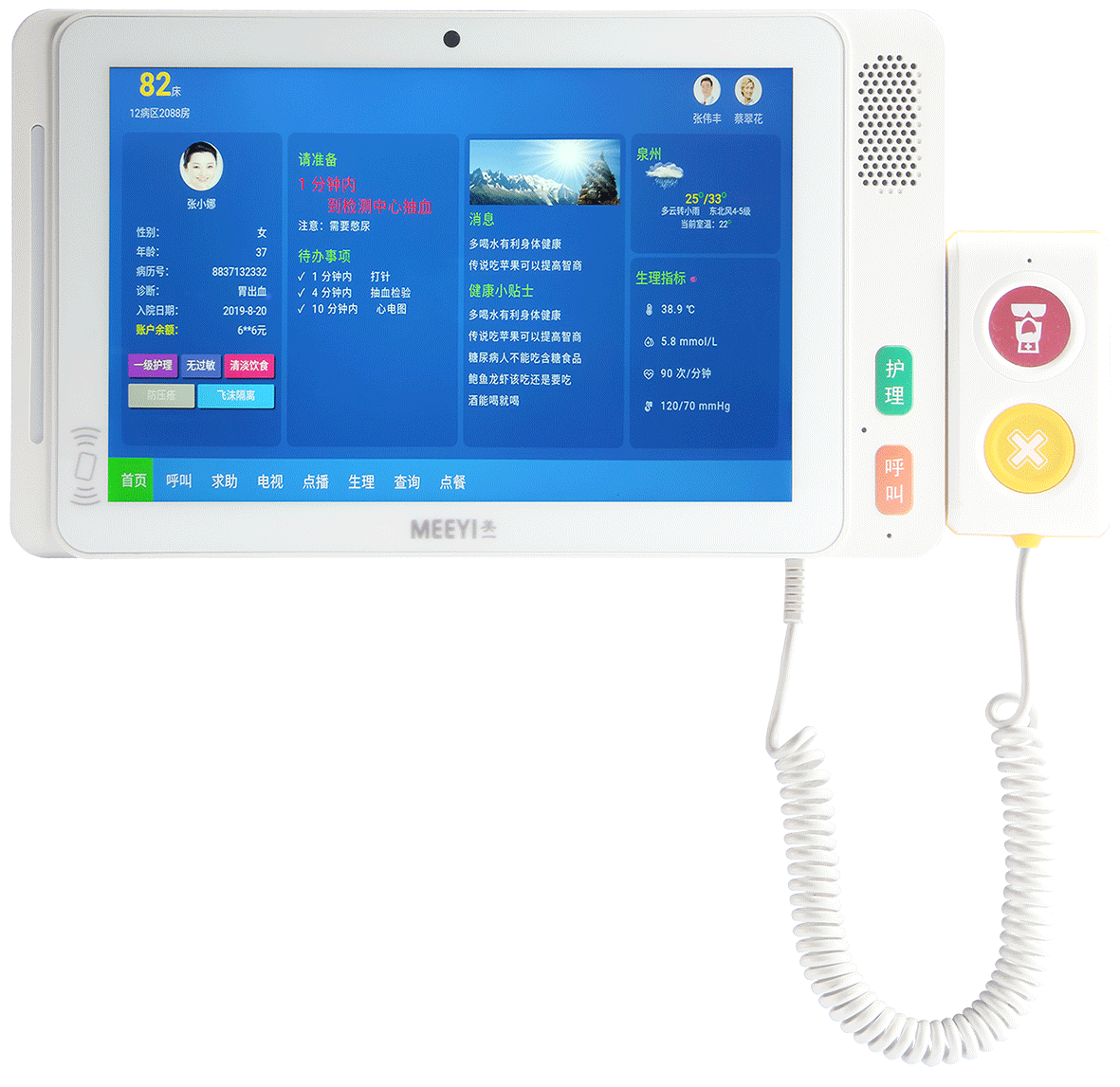 2. 集成呼叫手柄,快速呼叫護士站,并進行雙向通話;