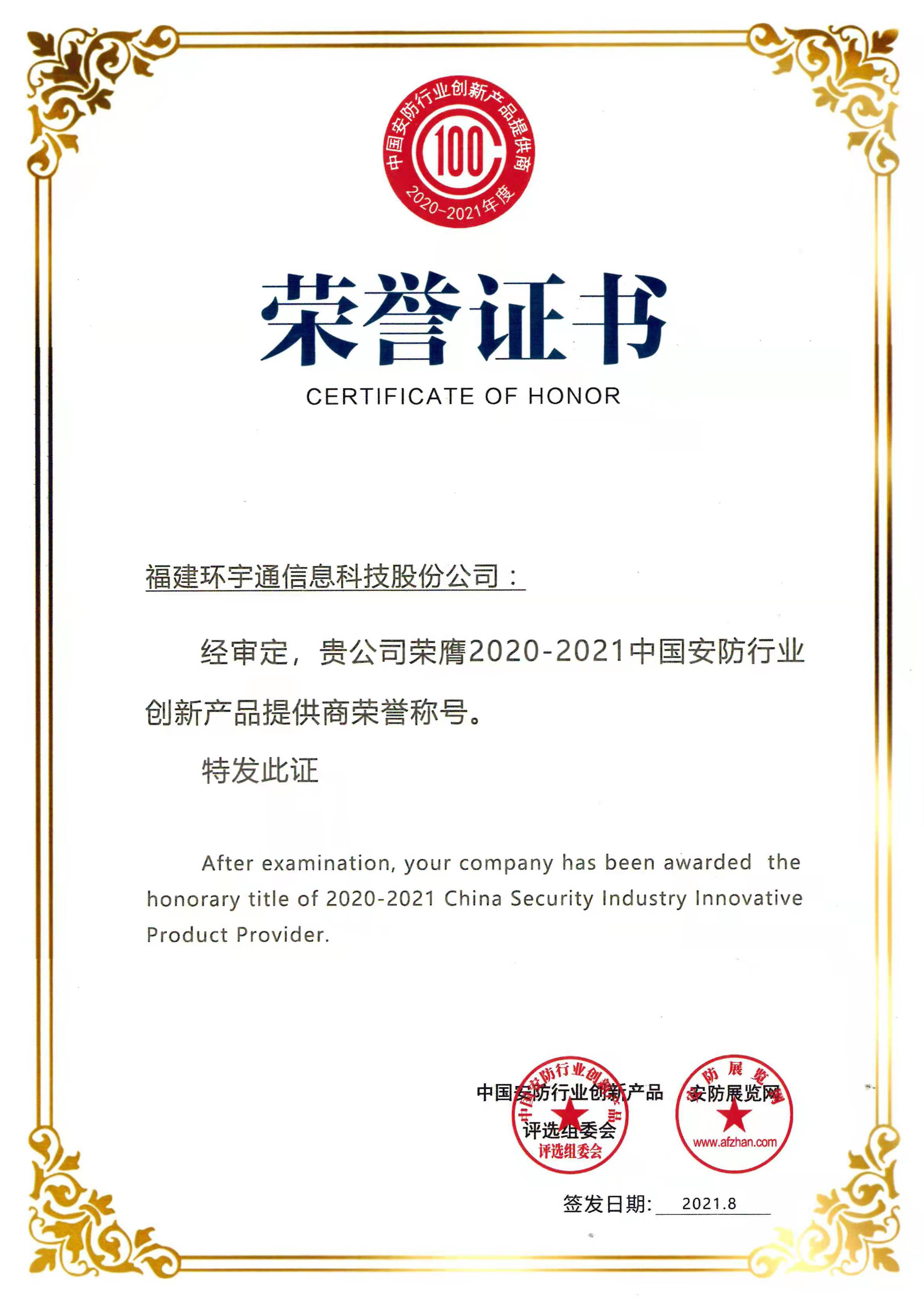 |  | | 第四屆中國安防創(chuàng)新品牌榮譽(yù)稱號 |