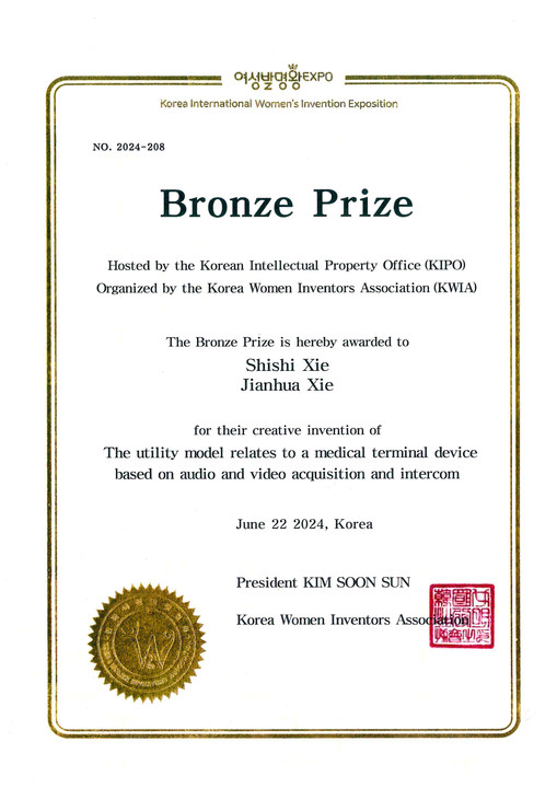 |  | | 2024韓國女性發(fā)明獎銅獎 |